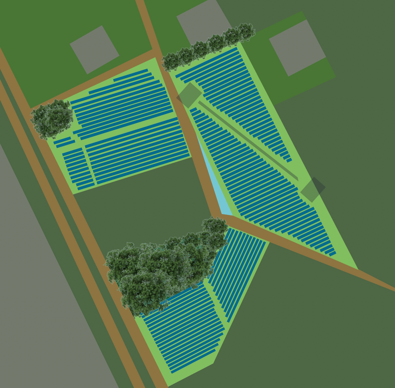 18 ha aan de rand van het dorp, naast de spoorlijn en vlakbij het